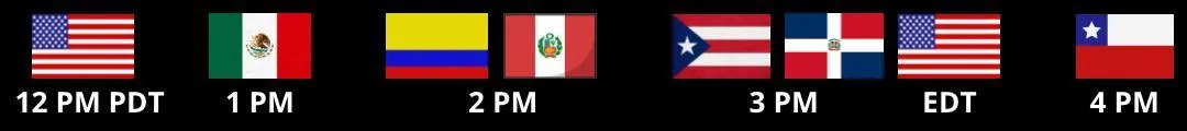 7:00 pm a 9:00pm COL Horario de inicio en otros países